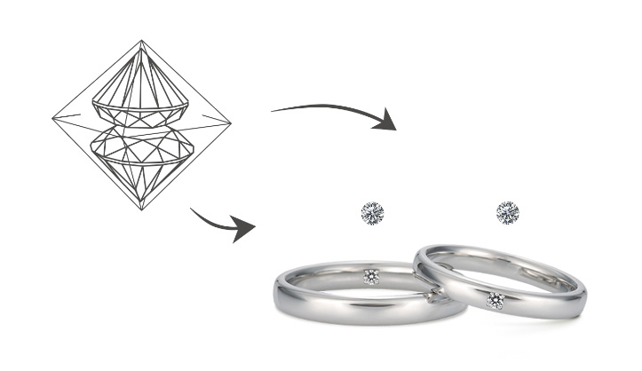 由同一顆原石進行切割,象徵兩人命運相連的光芒。