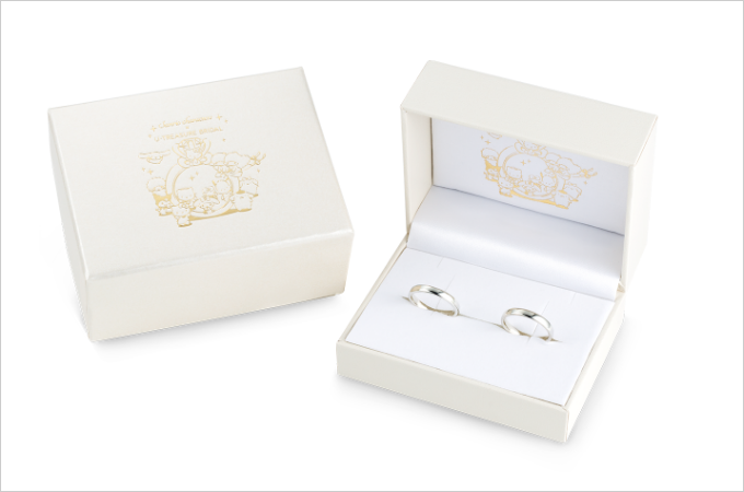 將以印有三麗鷗角色燙金圖樣的 專屬戒盒