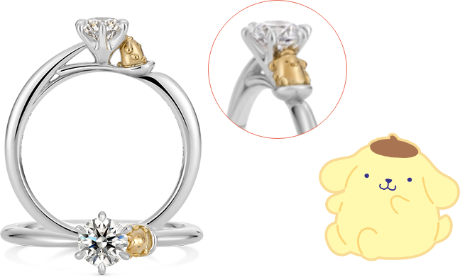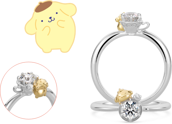 坐在湯匙上的布丁狗,展現出悠閒可愛的模樣,是款充滿童趣與溫暖氛圍的訂婚鑽戒。彷彿象徵著布丁狗在守護兩人,共度甜蜜幸福時光。