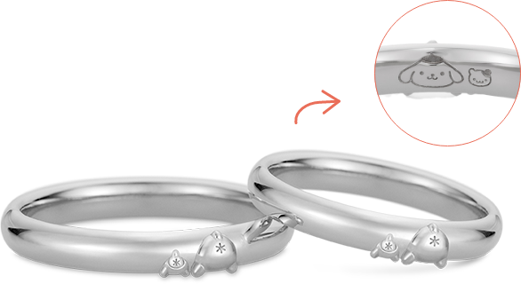 戒指內側刻有布丁狗與瑪芬探出臉來的俏皮身影,細節滿滿,